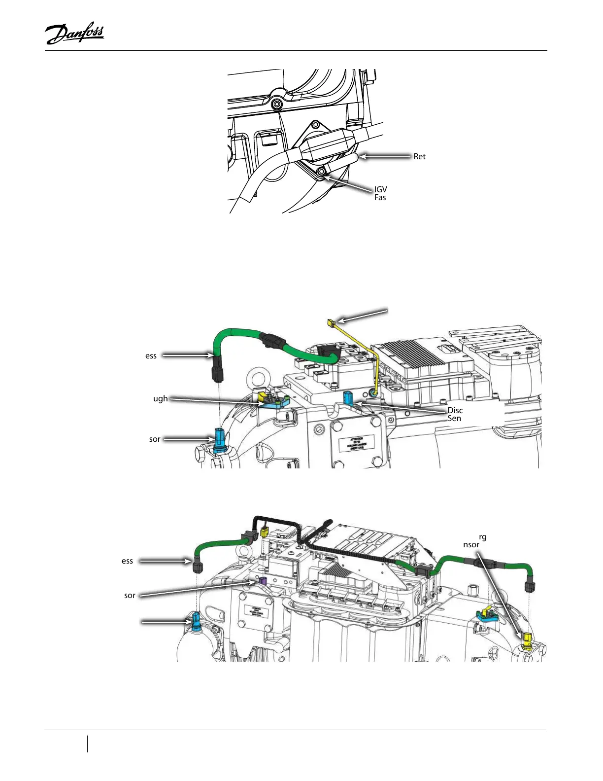 8. Disconnect the compressor cable harness from the IGV Motor, Suction and Discharge Sensors,