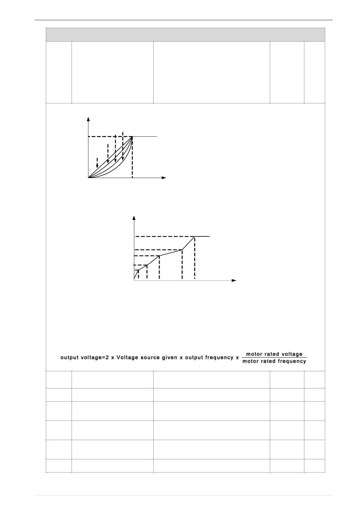 When the VF curve is straight line and power curve, the frequency-voltage curve is as follows: