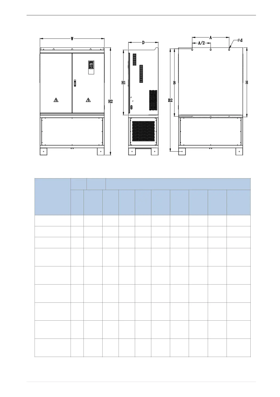 Table 3-1 VFD500 series appearance and installation dimension