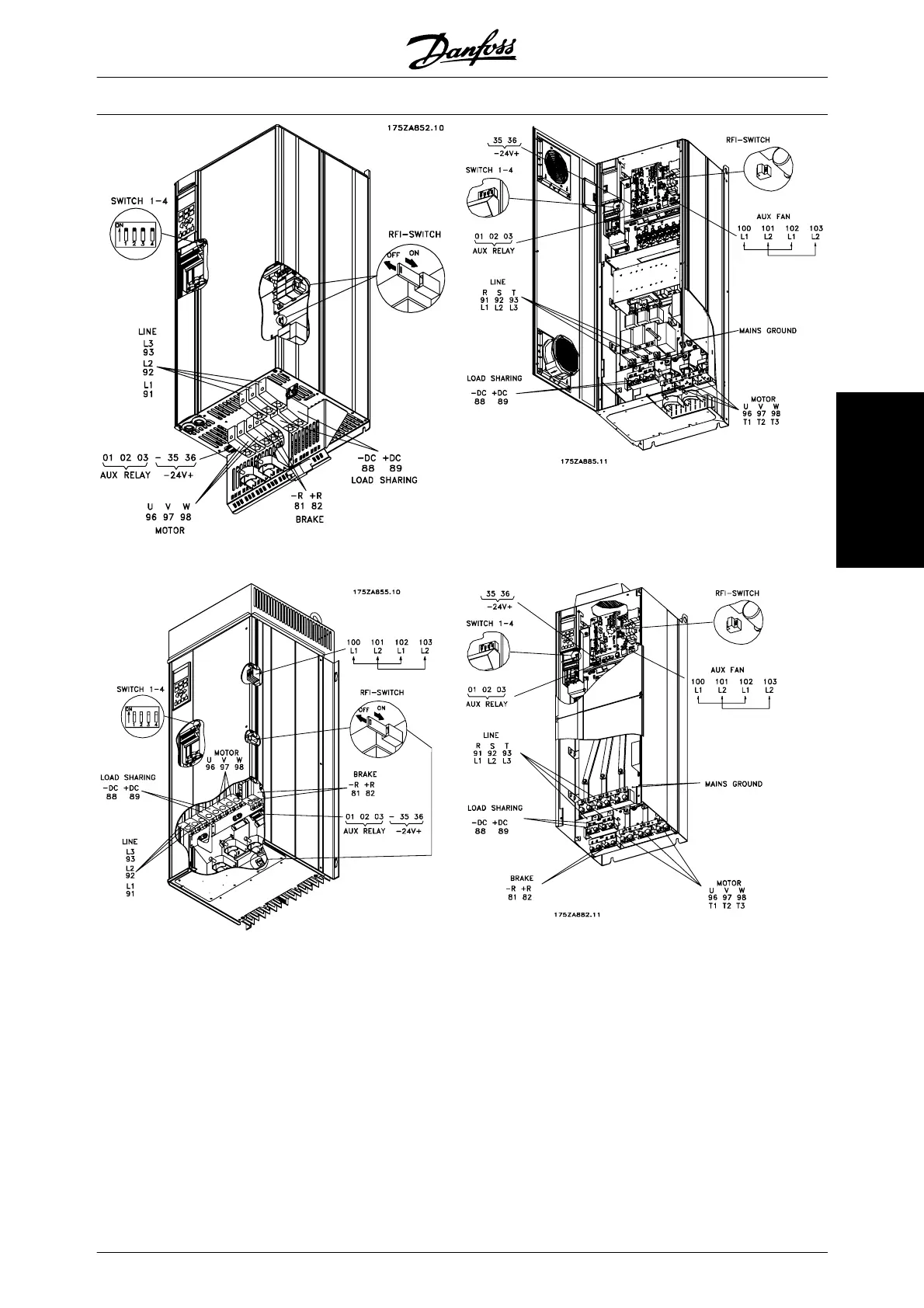 NOTE: The RFI switch has no function in the 525-690 V drives