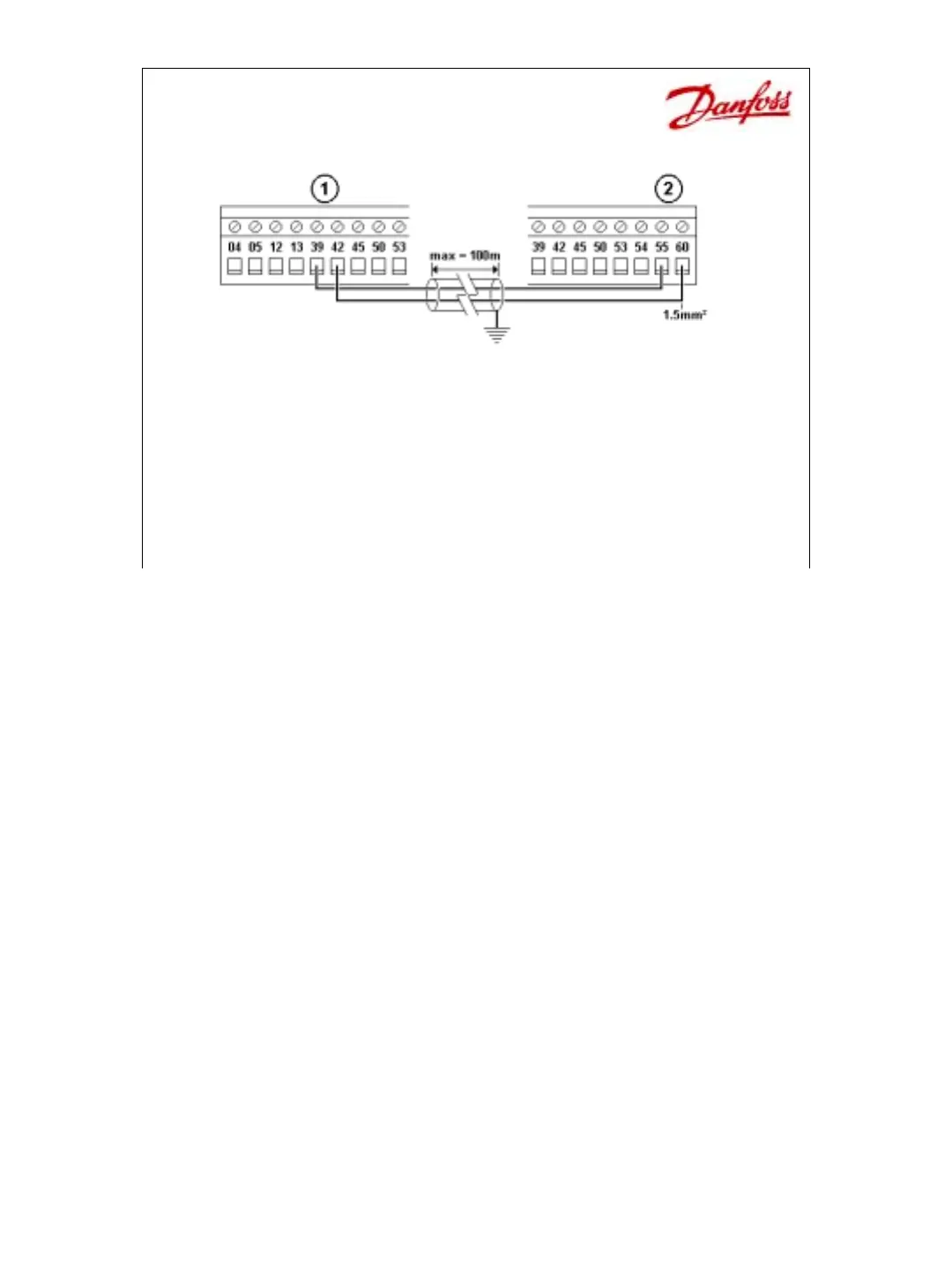 to terminal 55 of the slave. Parameter 202 in the master sets the slope of the signal and