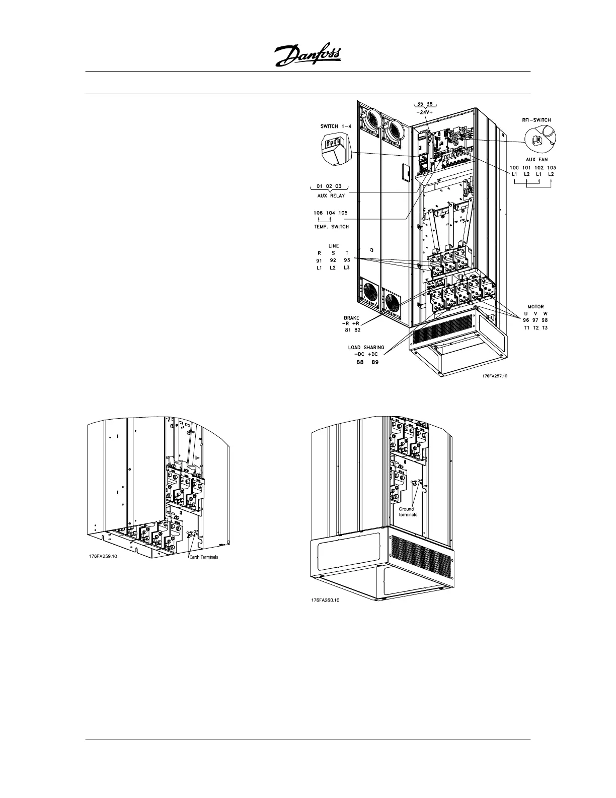 Position of earth terminals, IP 00 Position of earth terminals, IP 21/ IP 54