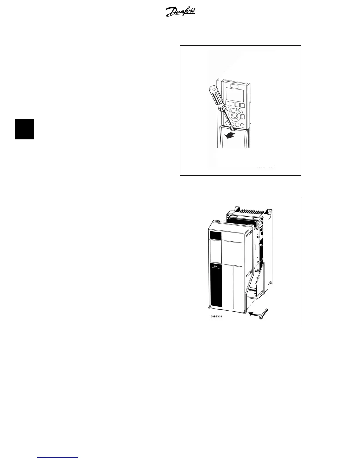 cover on the front of the frequency converter. Remove the terminal cover