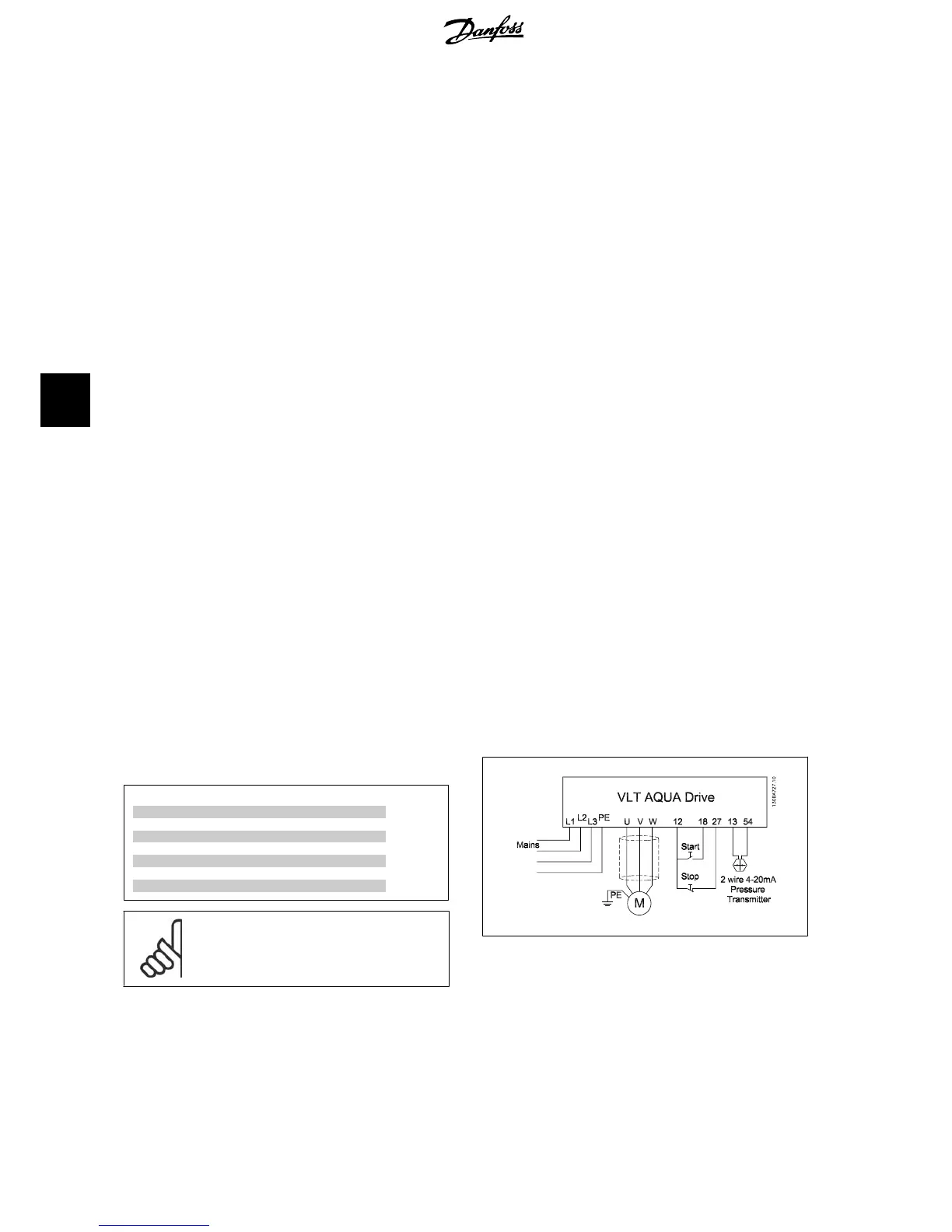 signal to the VLT AQUA Drive, which keeps a constant pressure by controlling the speed of the pump. To design a drive for a submersible pump application,
