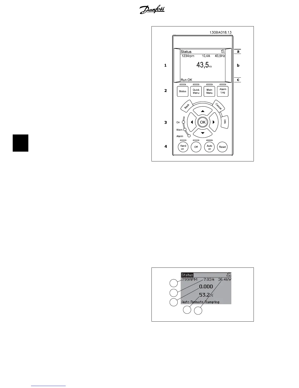 It is possible to toggle between three status read-out displays by pressing the [Status] key.