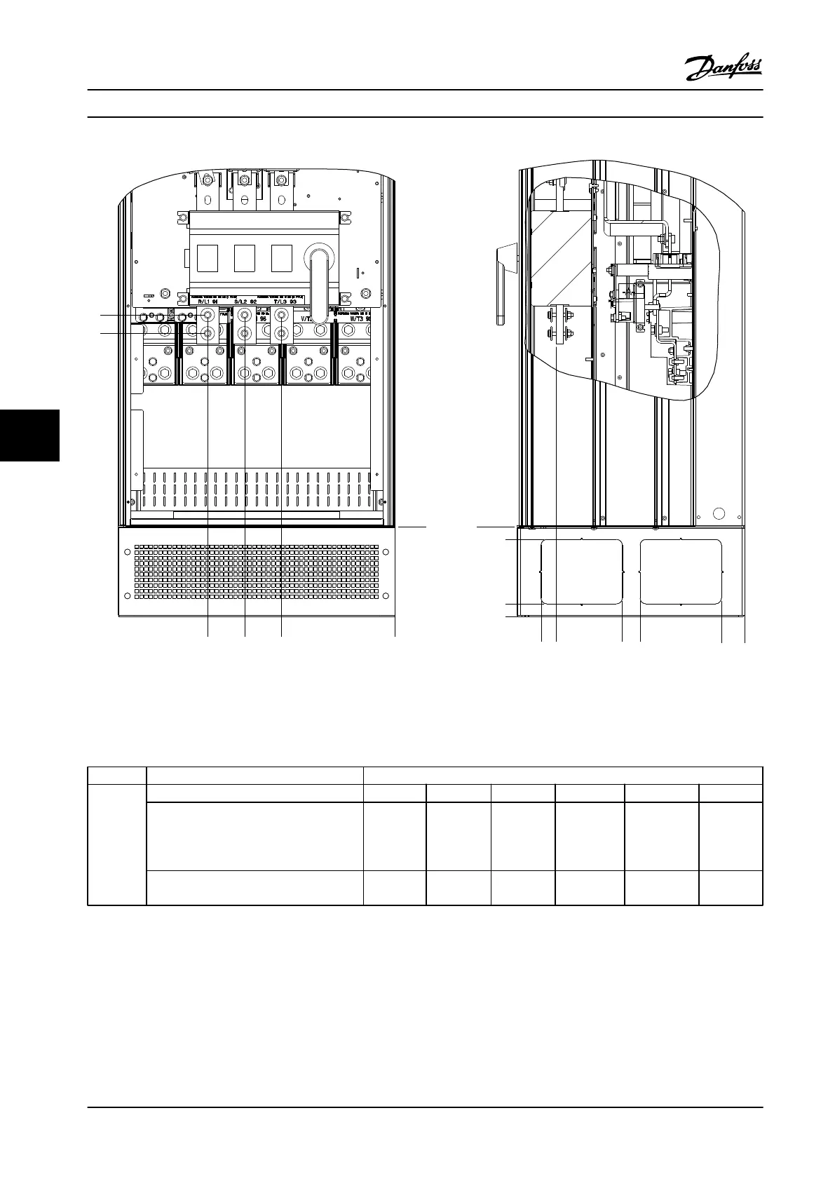 Figure 7.19 IP21 (NEMA Type 1) and IP54 (NEMA Type 12) Enclosure Power Connection Position of Disconnect Switch