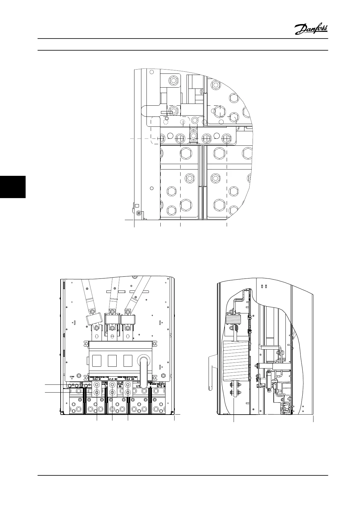 Figure 7.22 IP00 Enclosure Power Connections, Position of Disconnect Switch