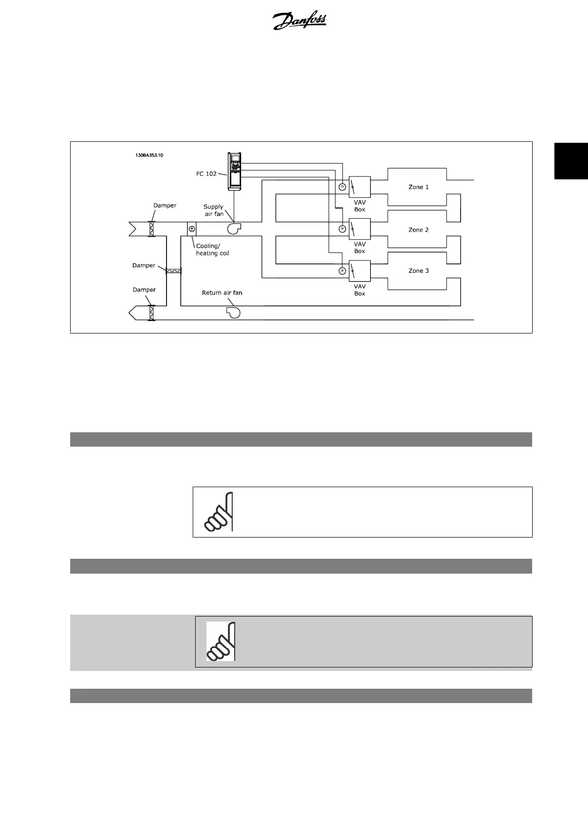 In an office building, a VAV (variable air volume) VLT HVAC Drive system must ensure a minimum pressure at selected VAV boxes. Due to the varying