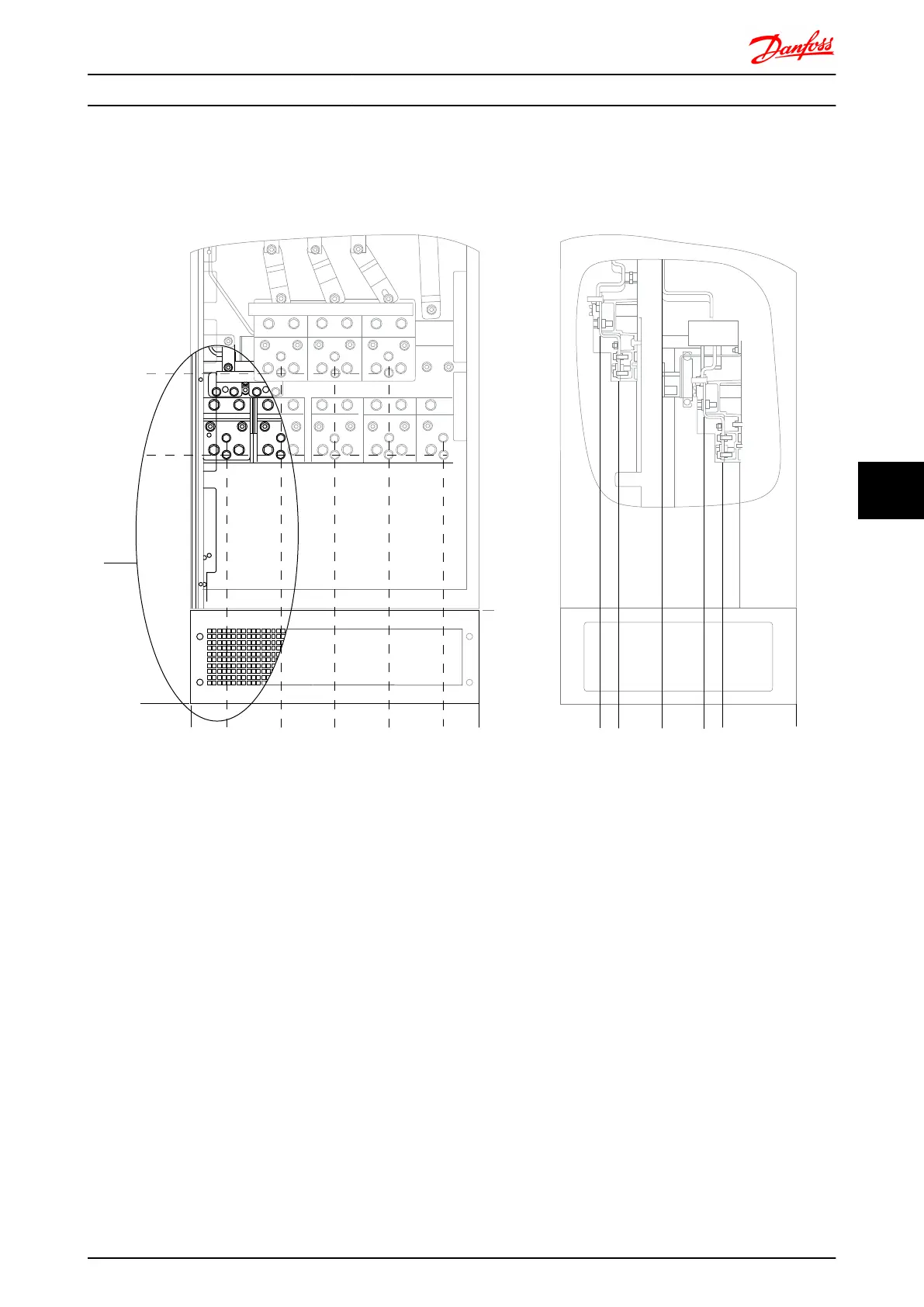 Illustration 7.19 IP21 (NEMA Type 1) and IP54 (NEMA Type 12) enclosure power connection positions