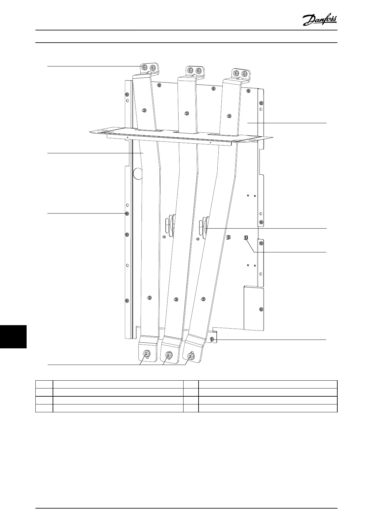 2 AC input busbar 6 Mixing fan vent (cable not shown)