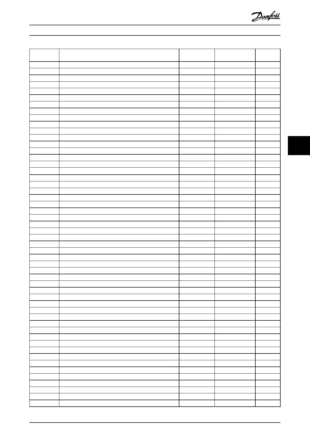 Number Description Warning Alarm/trip Alarm/trip