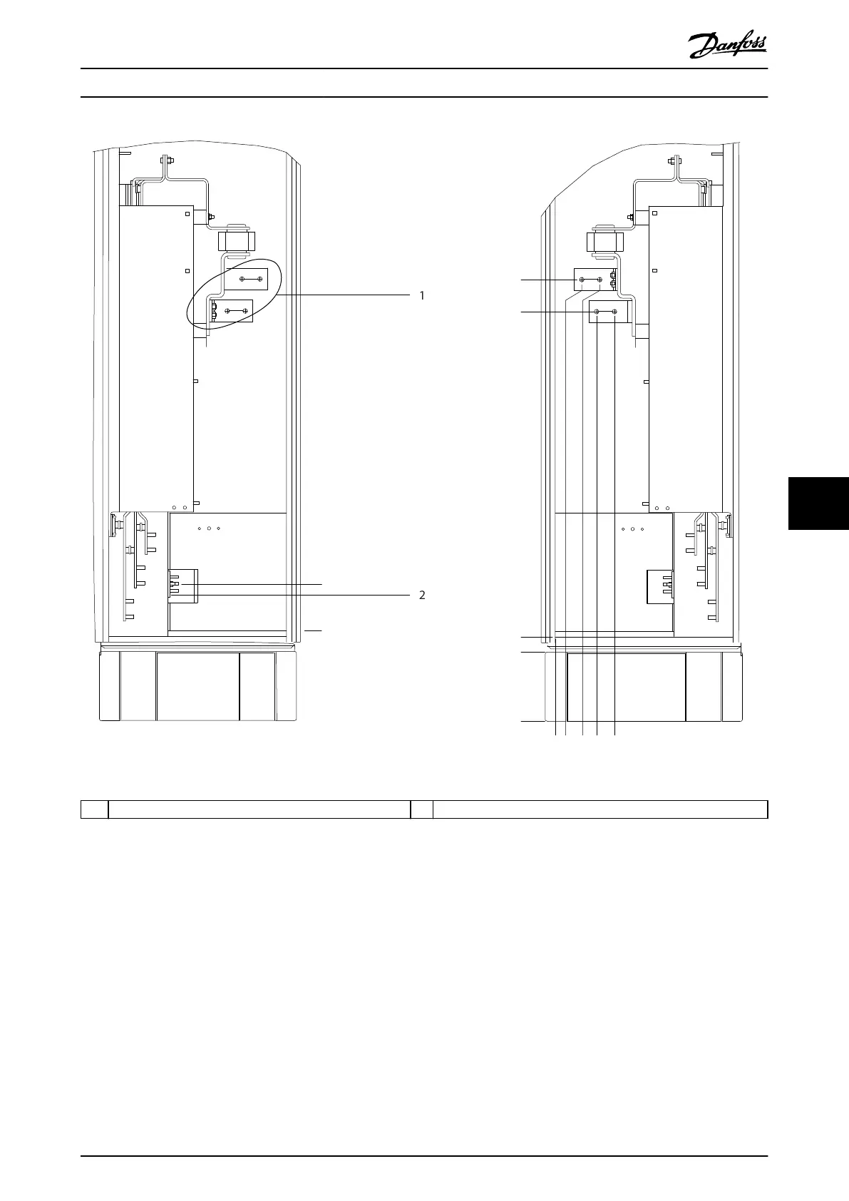 1 Mains terminals 2 Ground bar