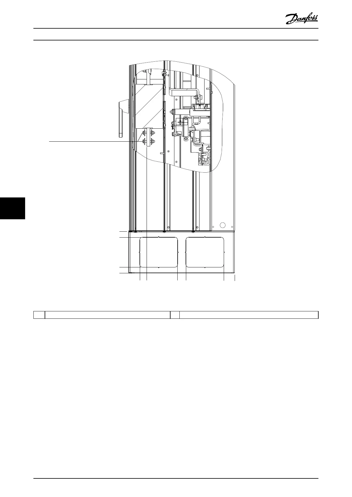 Illustration 8.9 Terminal Dimensions for E1 with Disconnect (380–480/500 V Models: P355–P400), Side View