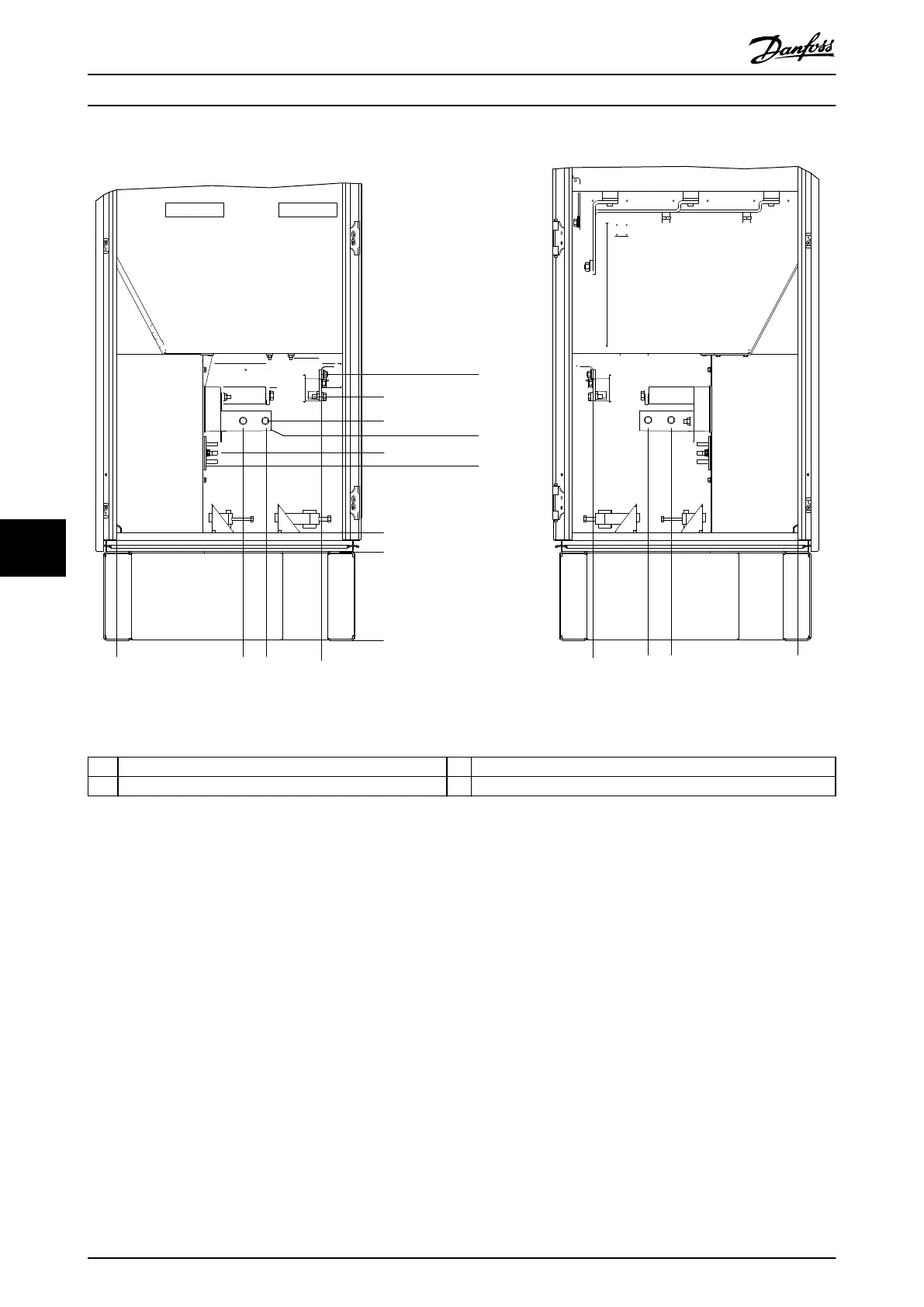 Illustration 8.24 Terminal Dimensions for F1/F3 Inverter Cabinet, Side View