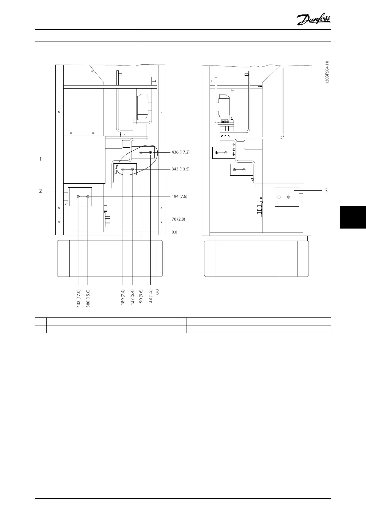Illustration 8.29 Terminal Dimensions for F1–F2 Rectier Cabinet, Side View