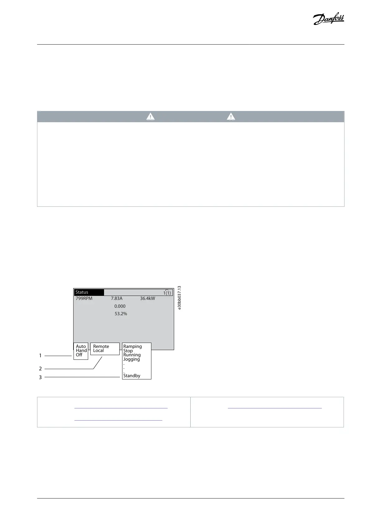 When the drive is in status mode, status messages automatically appear in the bottom line of the LCP display.
