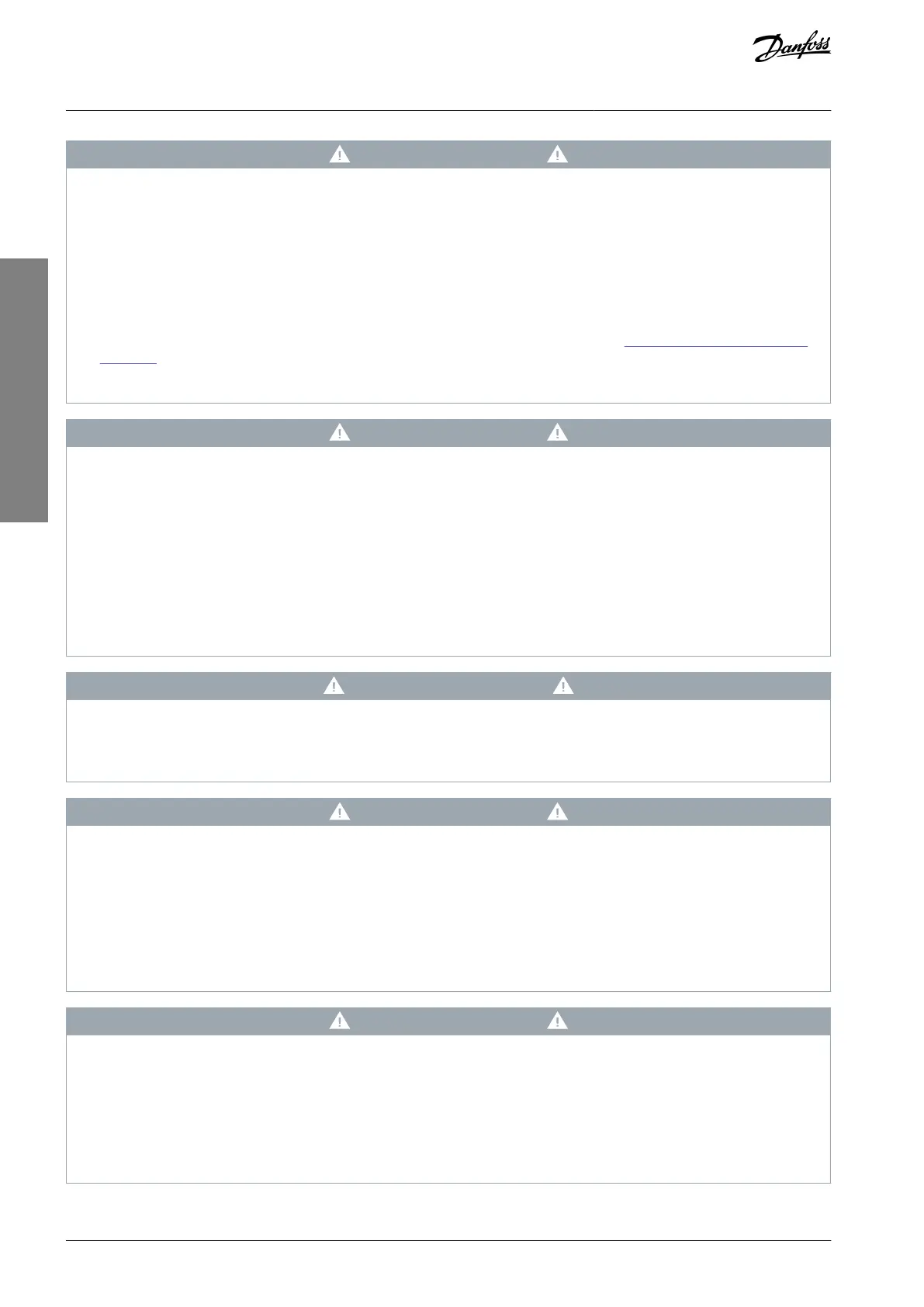 aflåst og afmærket. Hvis udgangsmotorkablerne ikke føres hver for sig, eller hvis der ikke bruges skærmede kabler, kan det resul-
