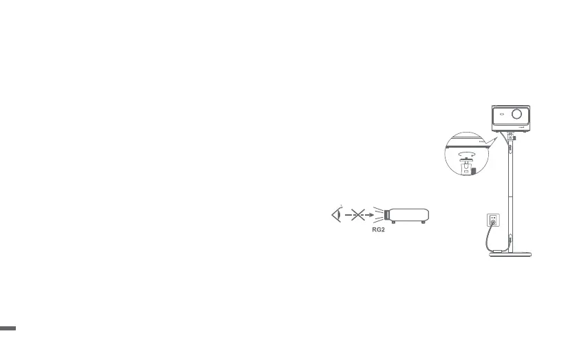 ㆍDo not look directly at the projection beam with your eyes, because the strong beam may harm your eyes. RG2 IEC 62471-5:2015