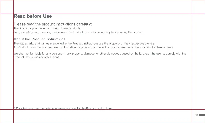 For your safety and interests, please read the Product Instructions carefully before using the product