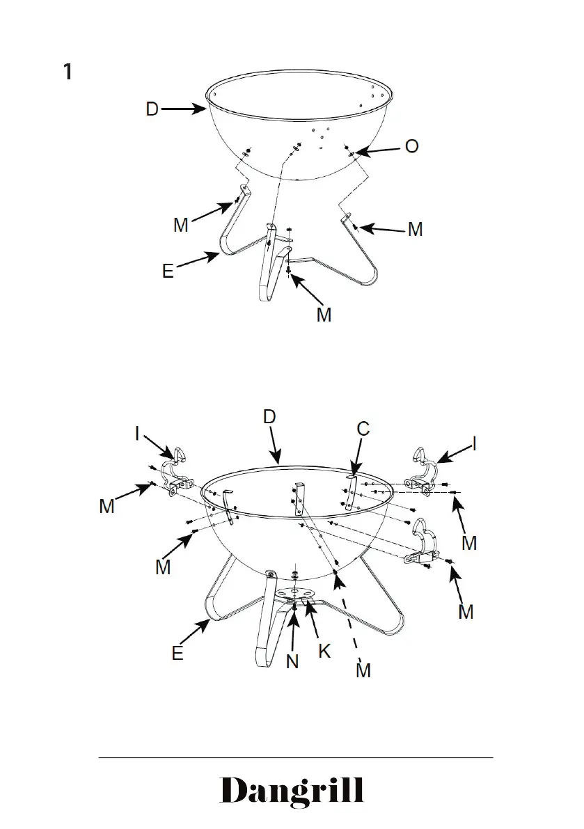 Dangrill 95318 - Assembly Steps; Step 1: Main Body and Legs; Step 2: Attaching Handles and Ash Catcher