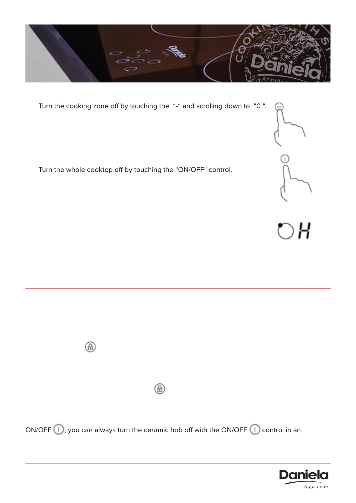 WARNING: When the hob is in the lock mode, all the controls are disable except the
