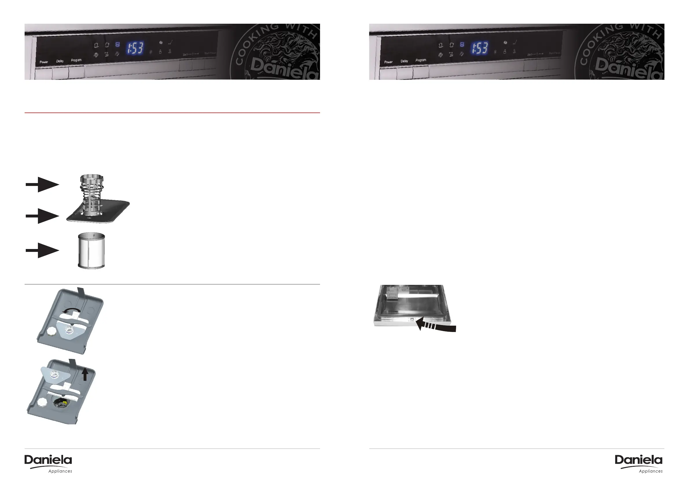 on the last page and reinsert the entire assembly in the dishwasher, positioning it in its seat and pressing downwards.