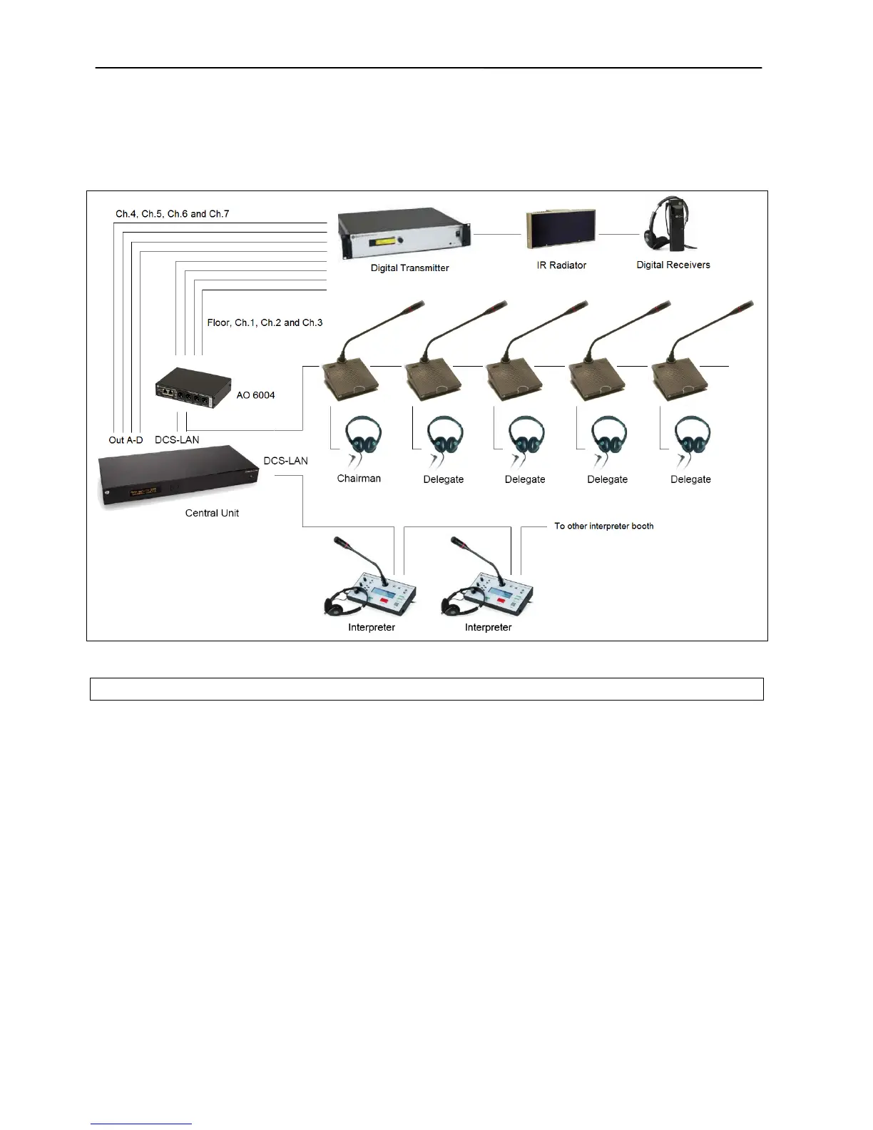 Figure 6.3-I DCS 6000 Digital Conference System with interpretation and wireless distribution, Ch.1 to Ch.7