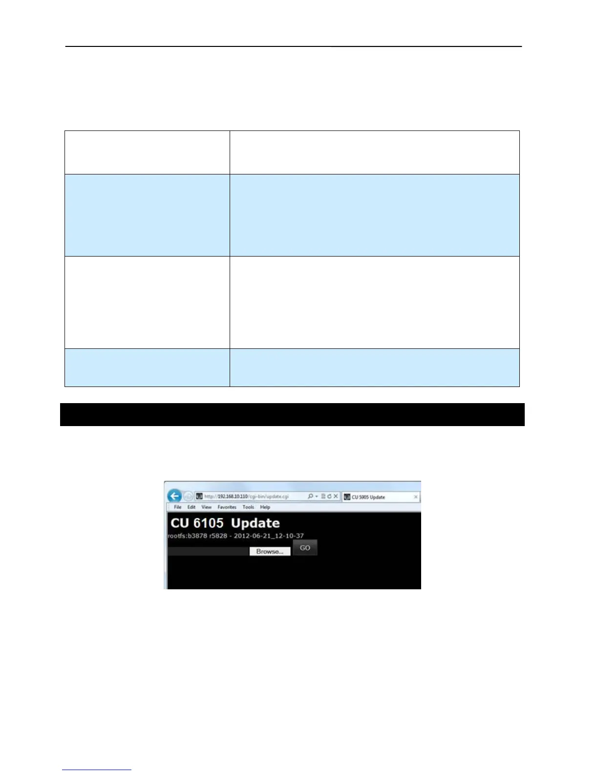 If firmware update of the CU 6105 Central Unit is needed for maintenance, this is done using the browser interface.