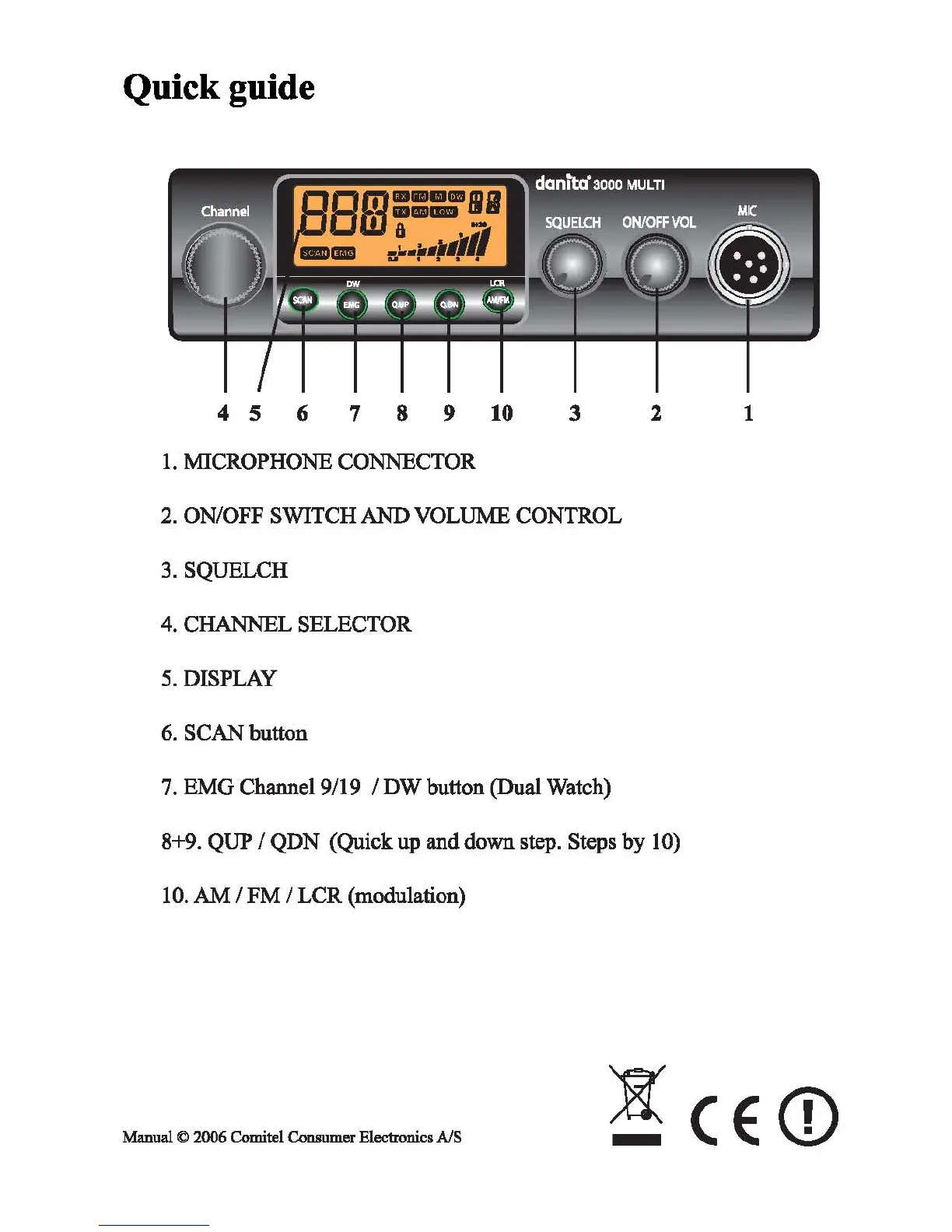 Danita 3000 Multi - Quick guide; Microphone Connector; ON;OFF Switch and Volume Control; Squelch
