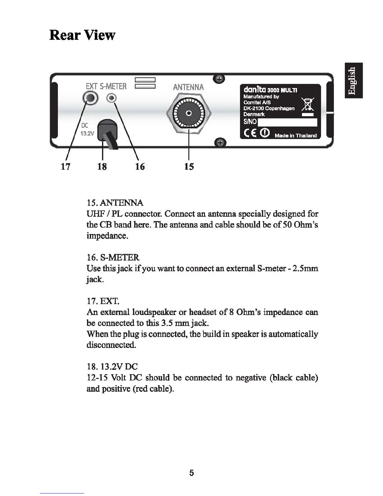 Danita 3000 Multi - Rear View; ANTENNA Connector; S-METER Jack; EXT. (External Speaker;Headset)