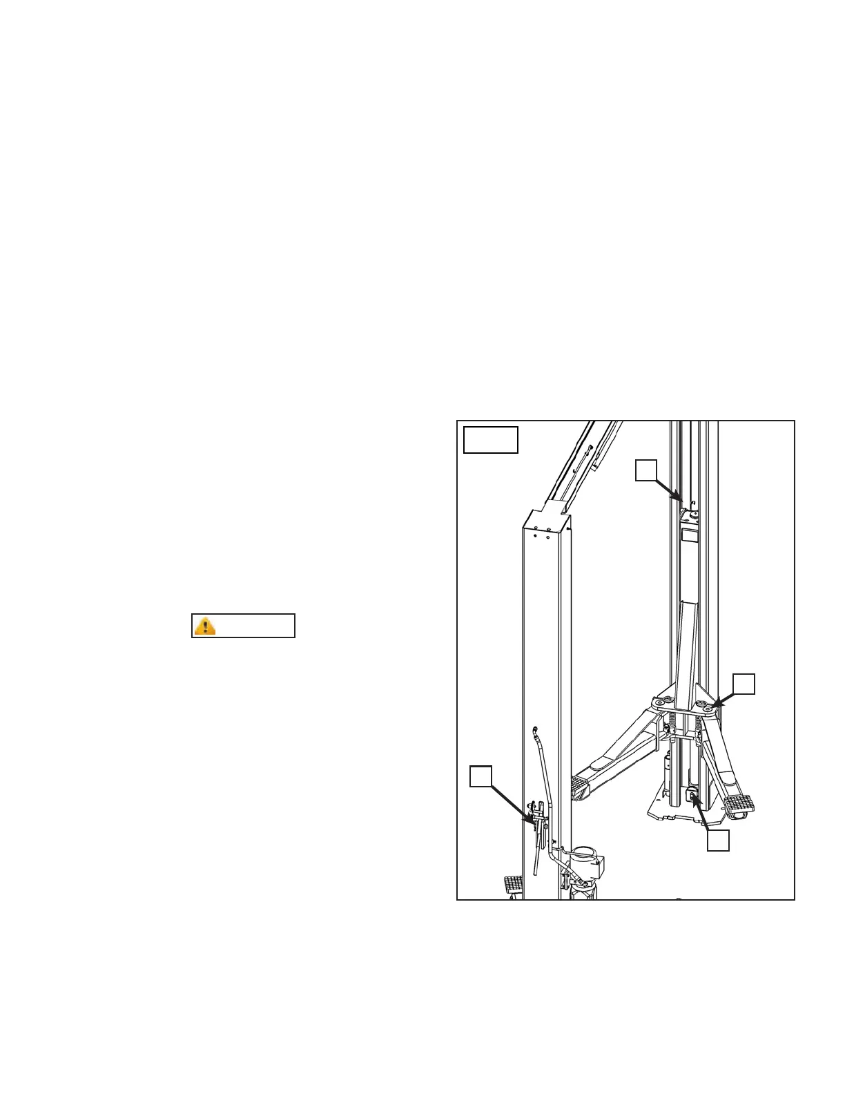 4. With the lift at half height, slowly loosen the bleed screws located at the top of each cylinder to bleed