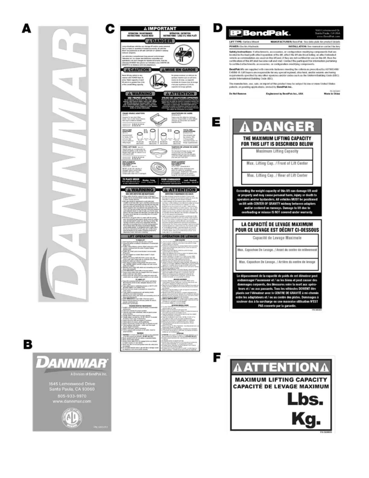 Dannmar D2-12C - Lift Capacity and Safety Labels; Maximum Lifting Capacity Information
