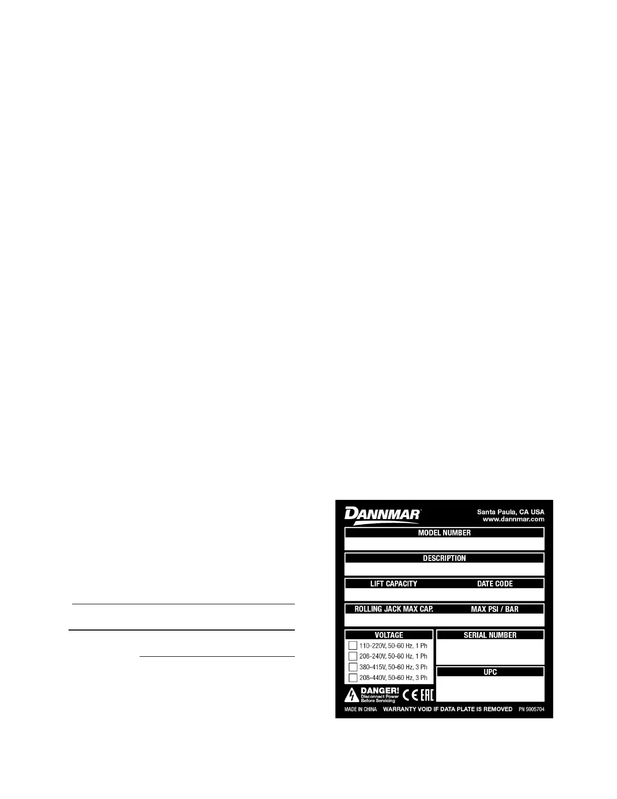 Trademarks. Dannmar, the Dannmar logo, BendPak, and the BendPak logo are registered trademarks of