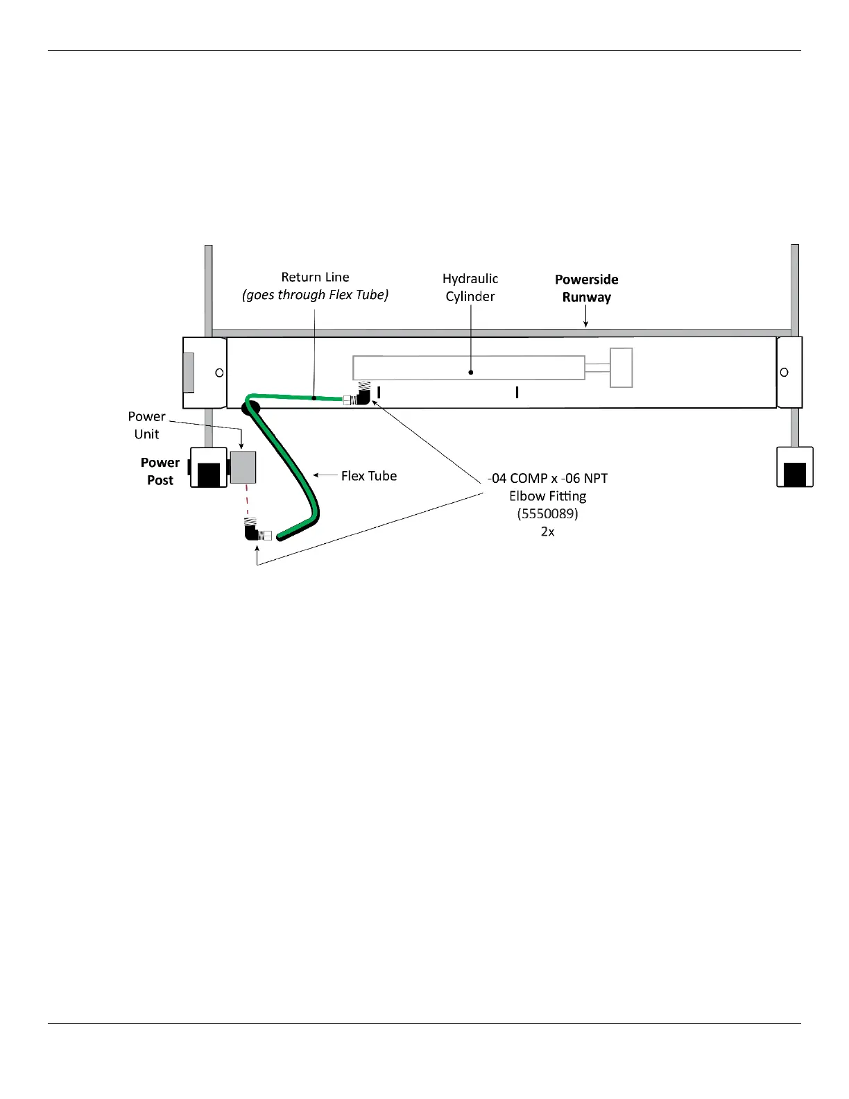 The following illustration shows how to route the Return Line from the Hydraulic Cylinder to the Power