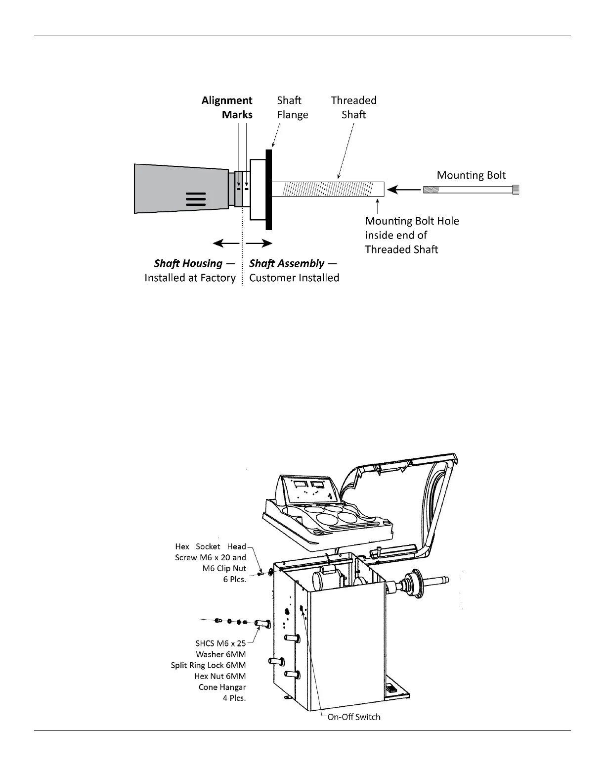 Note: The wheels to be balanced ride on a matcher Shaft that mates to a threaded shaft on the