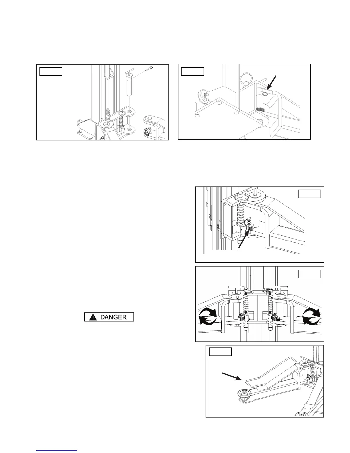 1. Raise the lift high enough so that the arm gear stops. Attempt to automatically engage the restraint gears on the