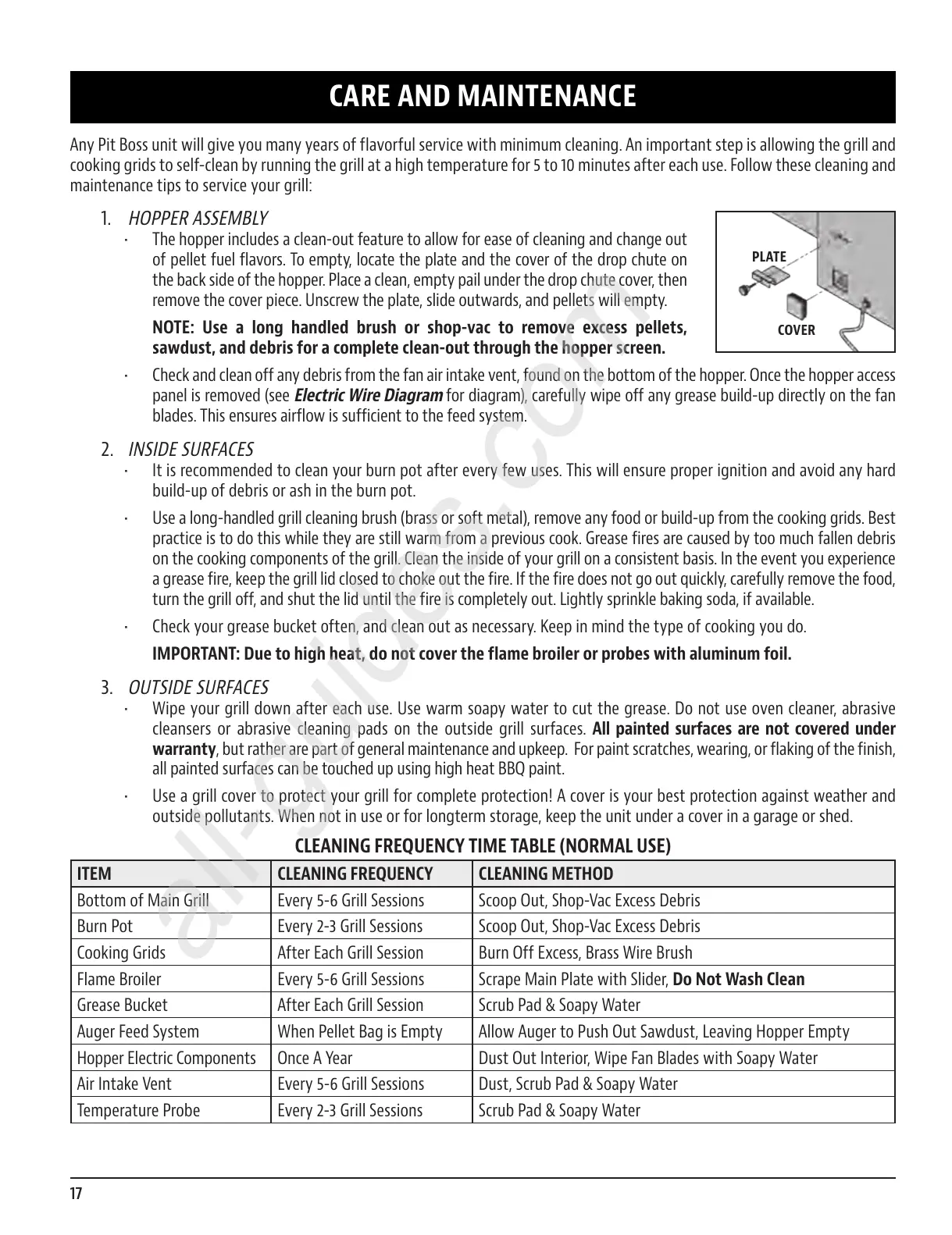 Burn Pot Every 2-3 Grill Sessions Scoop Out, Shop-Vac Excess Debris