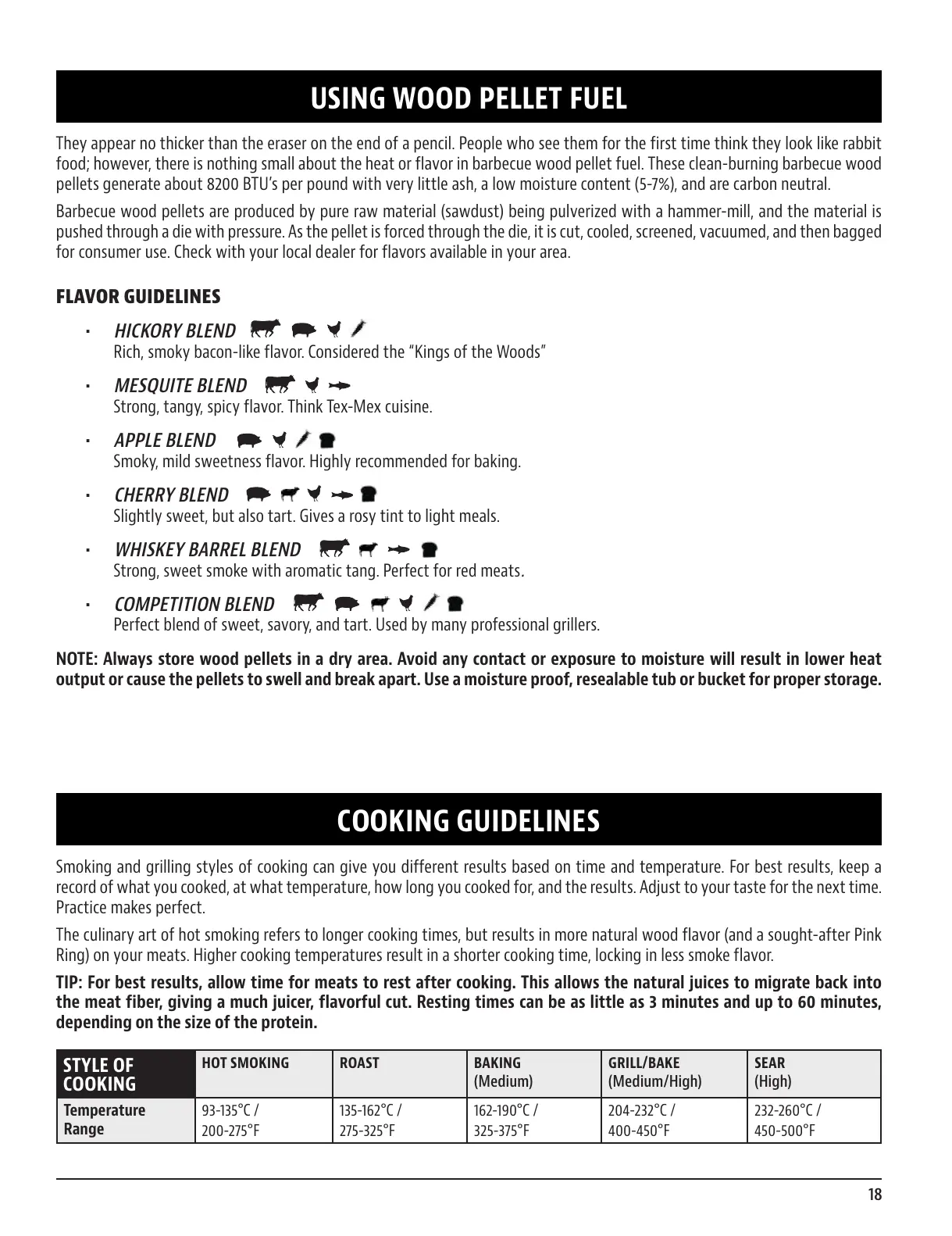 NOTE: Always store wood pellets in a dry area. Avoid any contact or exposure to moisture will result in lower heat