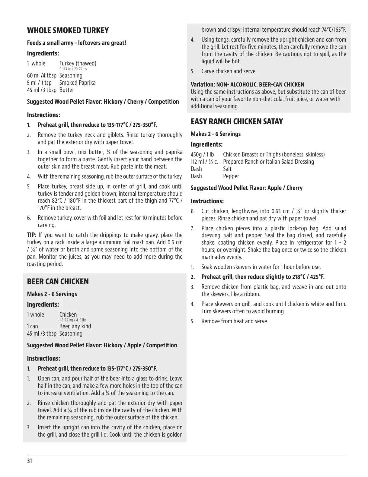 Suggested Wood Pellet Flavor: Hickory / Cherry / Competition