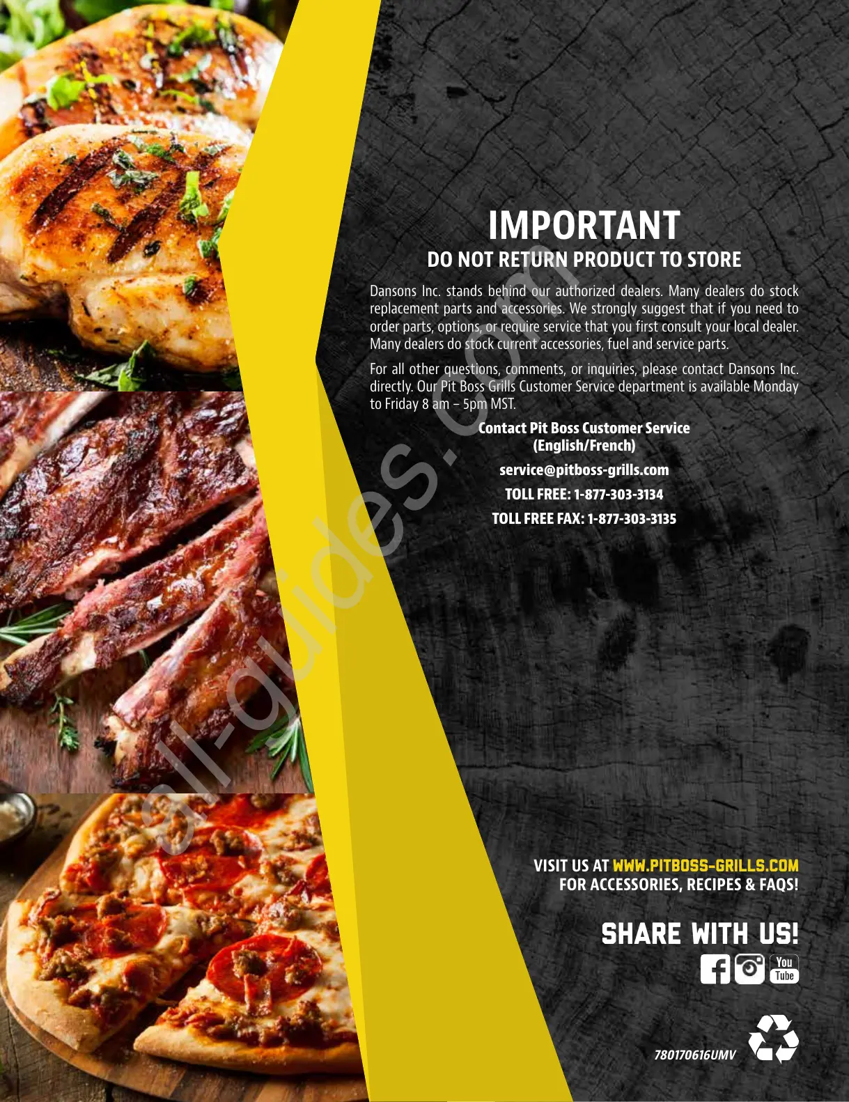 directly. Our Pit Boss Grills Customer Service department is available Monday