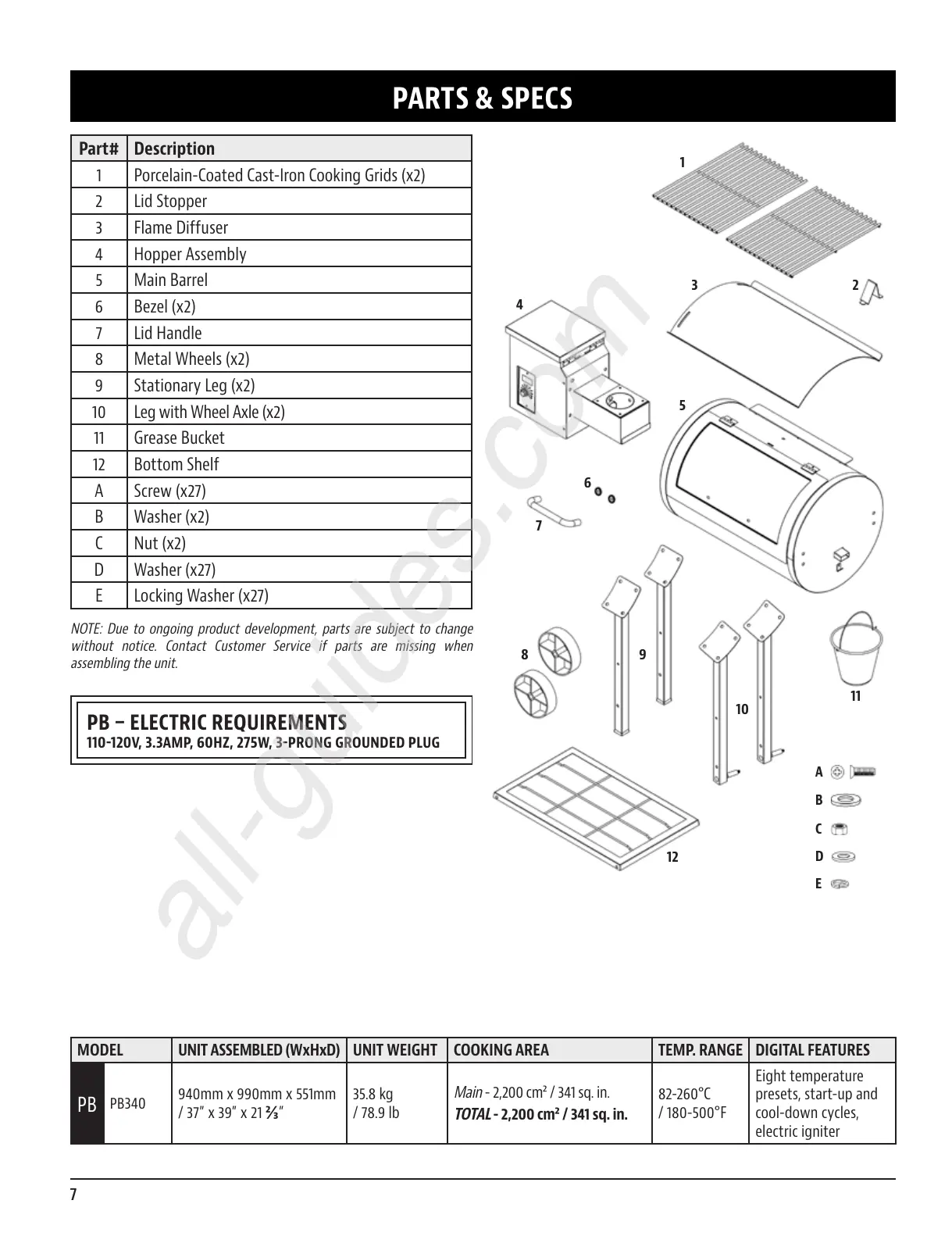MODEL UNIT ASSEMBLED (WxHxD) UNIT WEIGHT COOKING AREA TEMP. RANGE DIGITAL FEATURES
