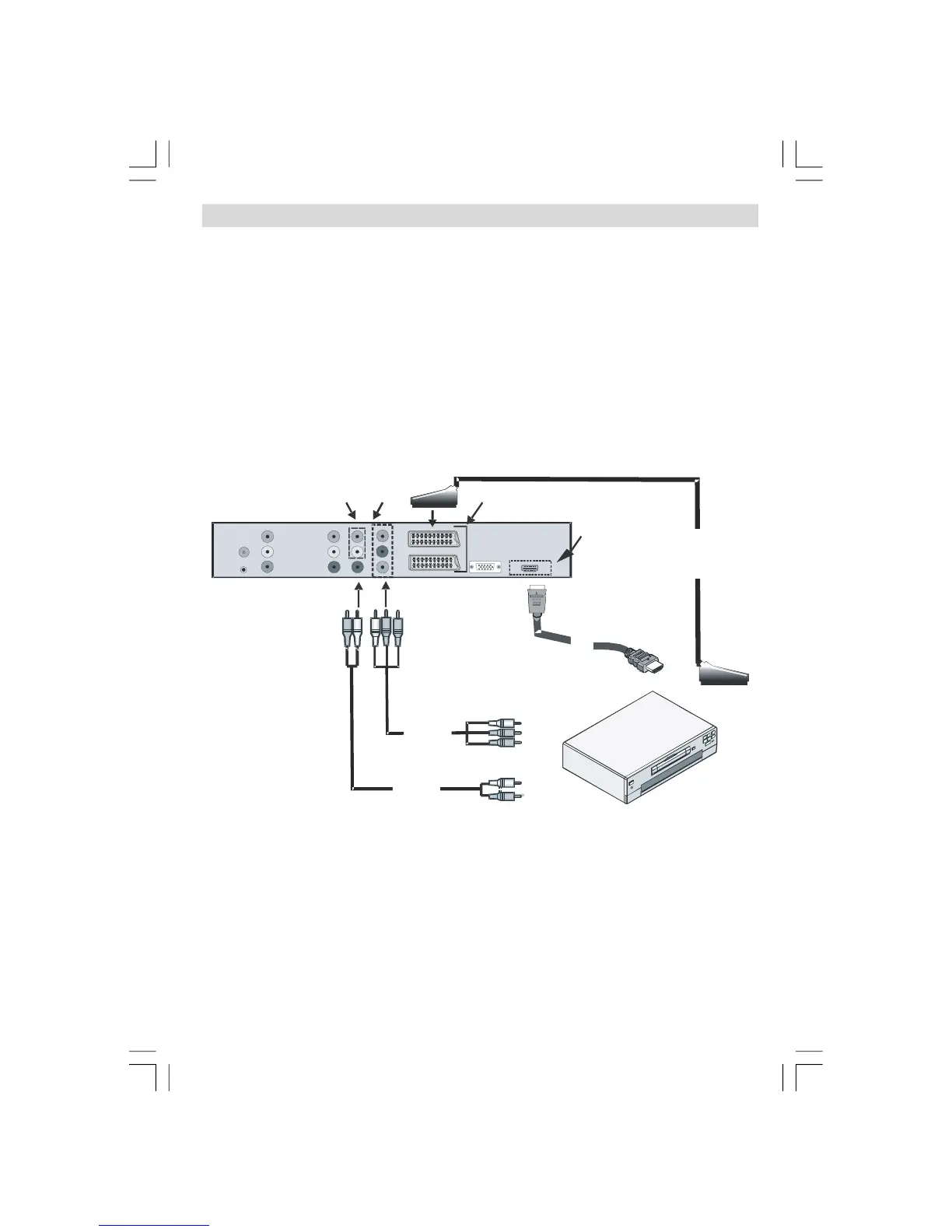 SCART 1 or SCART 2. Use a SCART cable as shown