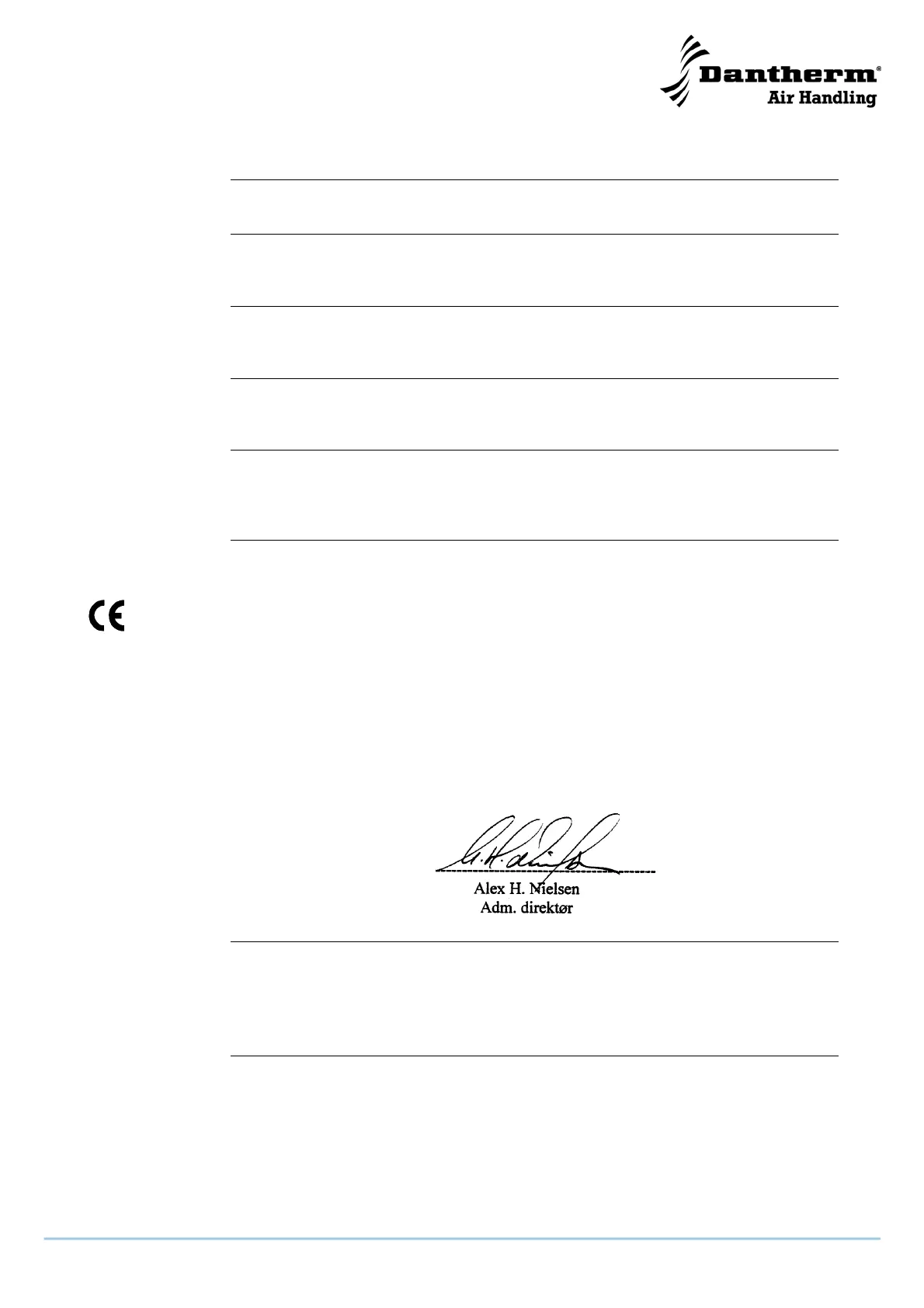 Dantherm Air Handling A/S, Marienlystvej 65, DK-7800 Skive erklærer på eget ansvar,