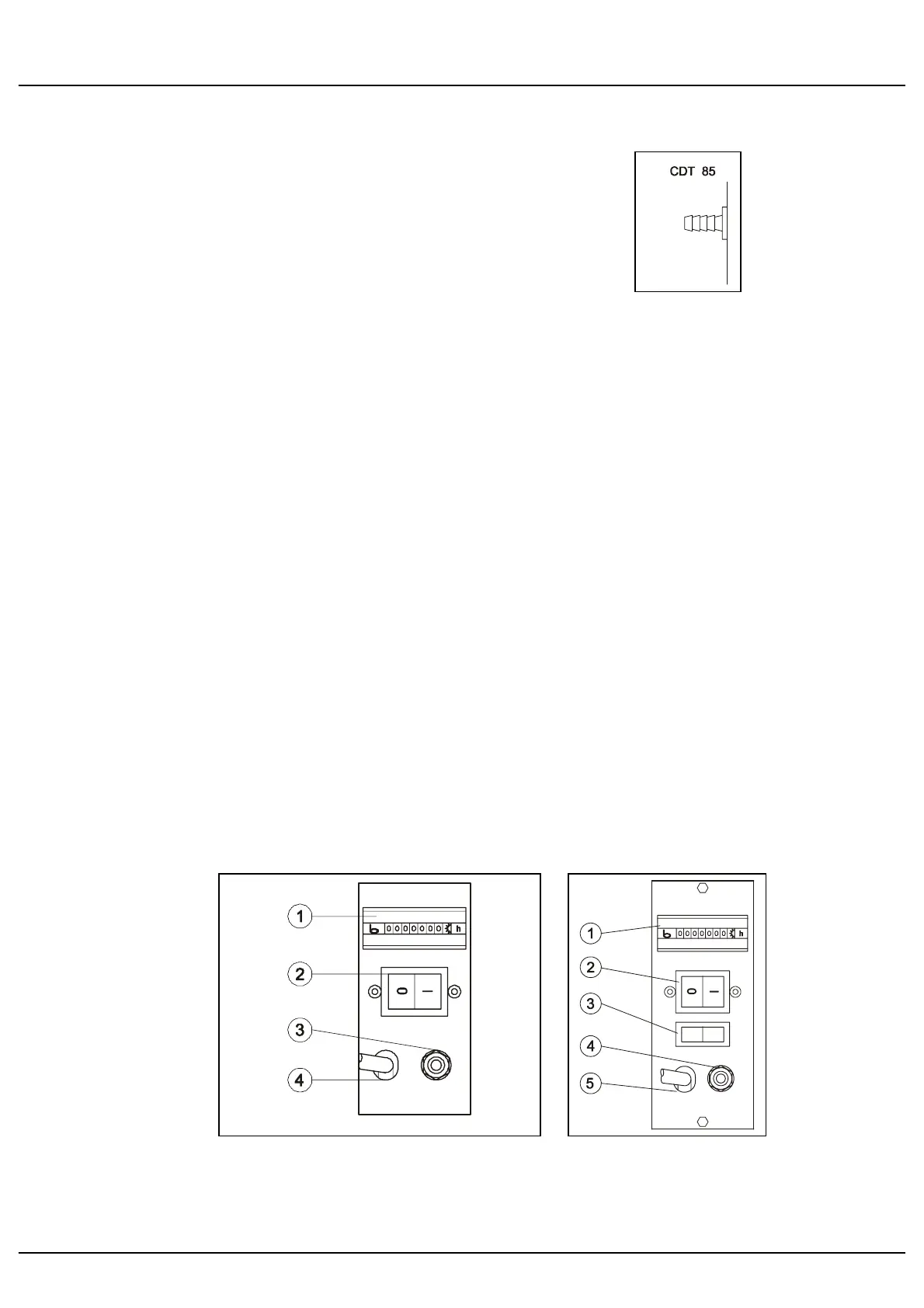 Fig. 5.1 shows the hour meter (1), main switch (2),