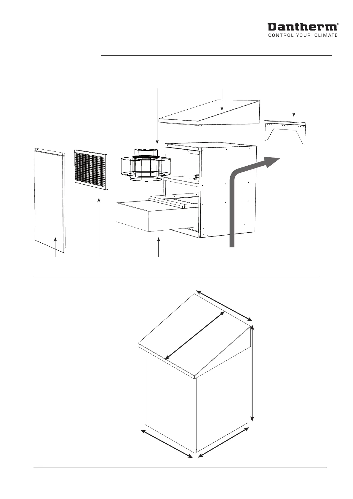 Dantherm Flexibox 900 - Product Overview - Outdoor Air Flow up; Product Dimensions - Outdoor Air Flow up