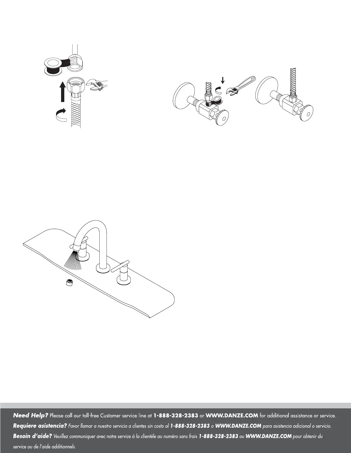 Check for leaks. Turn on the faucet handles for one minute to flush debris from faucet.