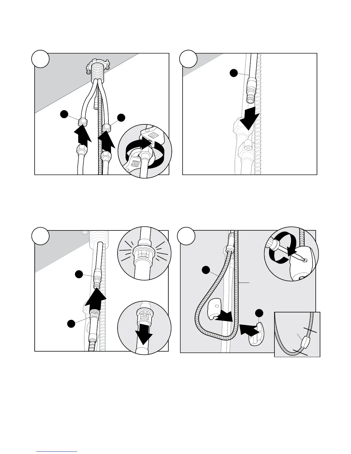 Attach quick connector (M) to discharge tube (I). Pull down on