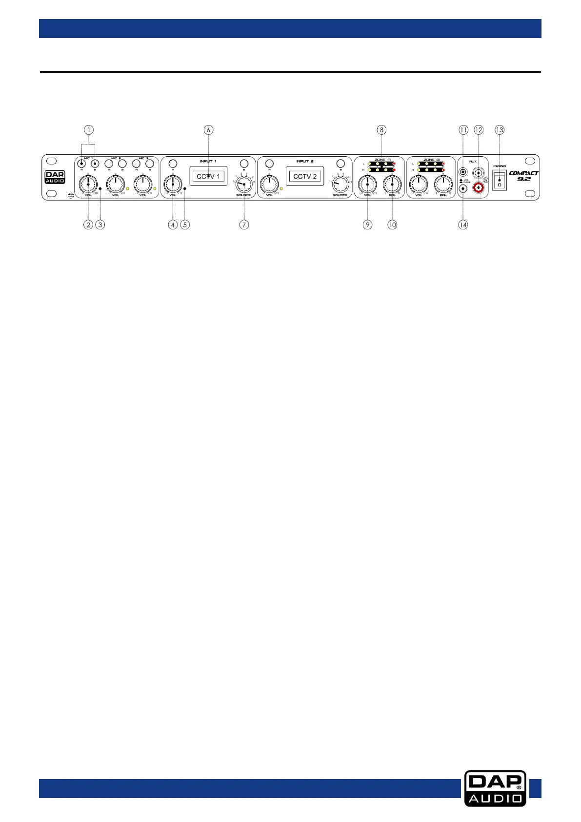 1. Zone select button (Mic 1–3)