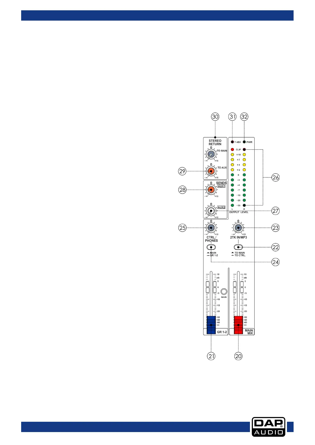 Each channel is equipped with a MAIN switch, pressing this button will send the signal to the MAIN MIX
