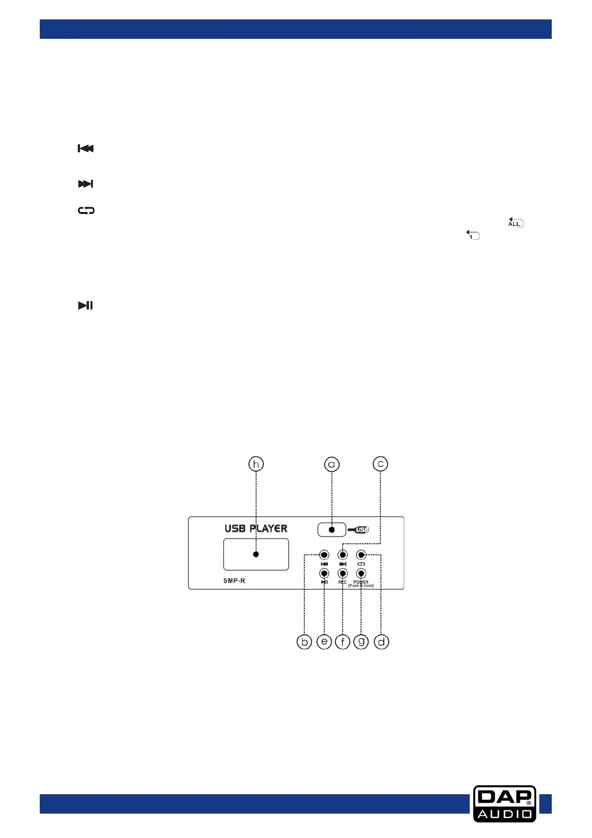 B PRE: Use this button to go back to the beginning of the current track or select a previous